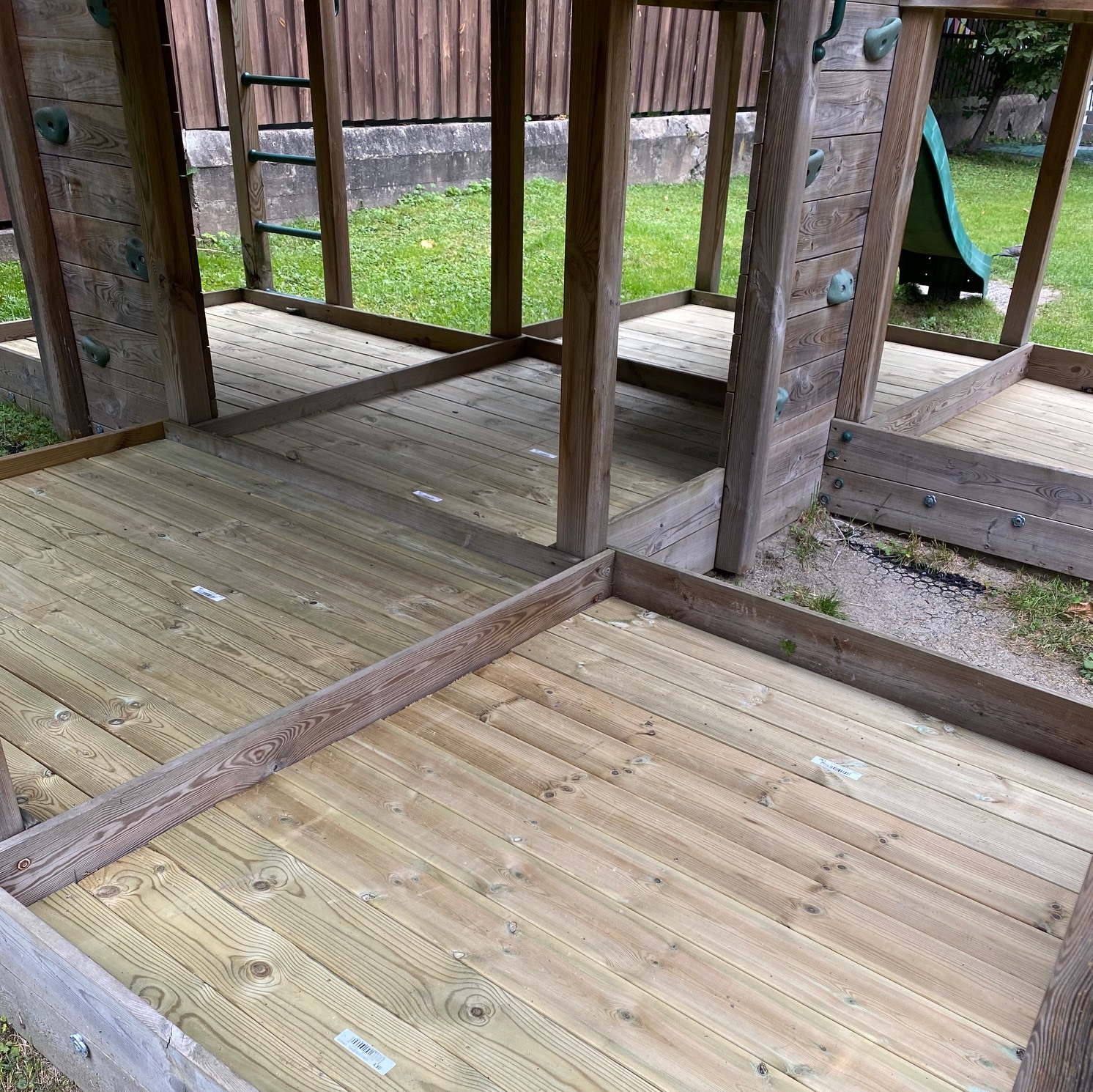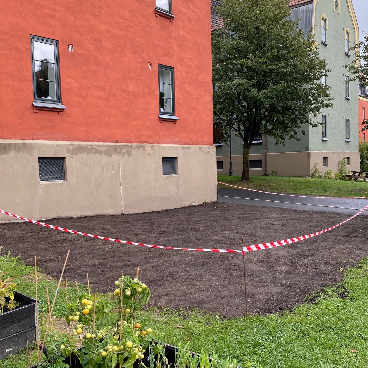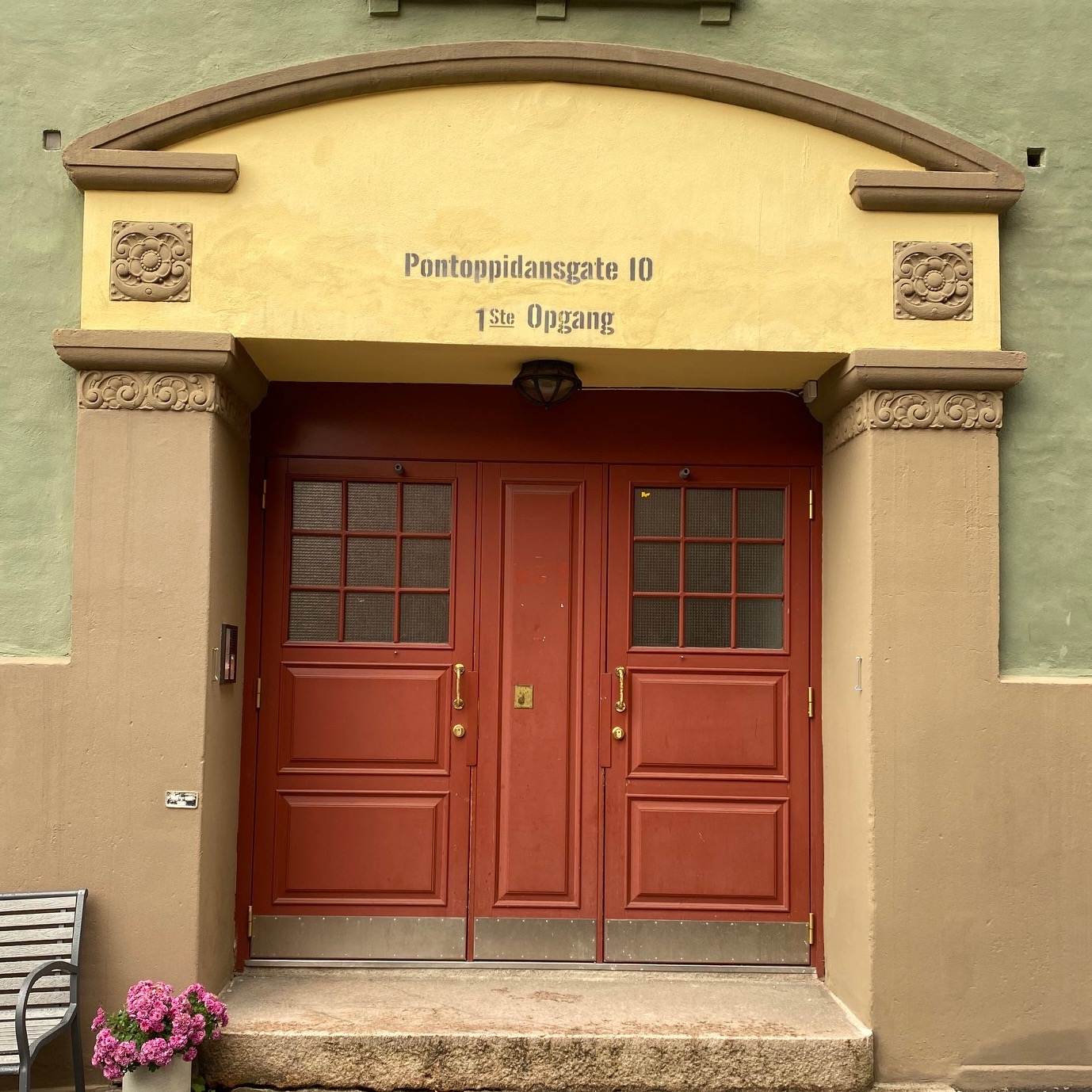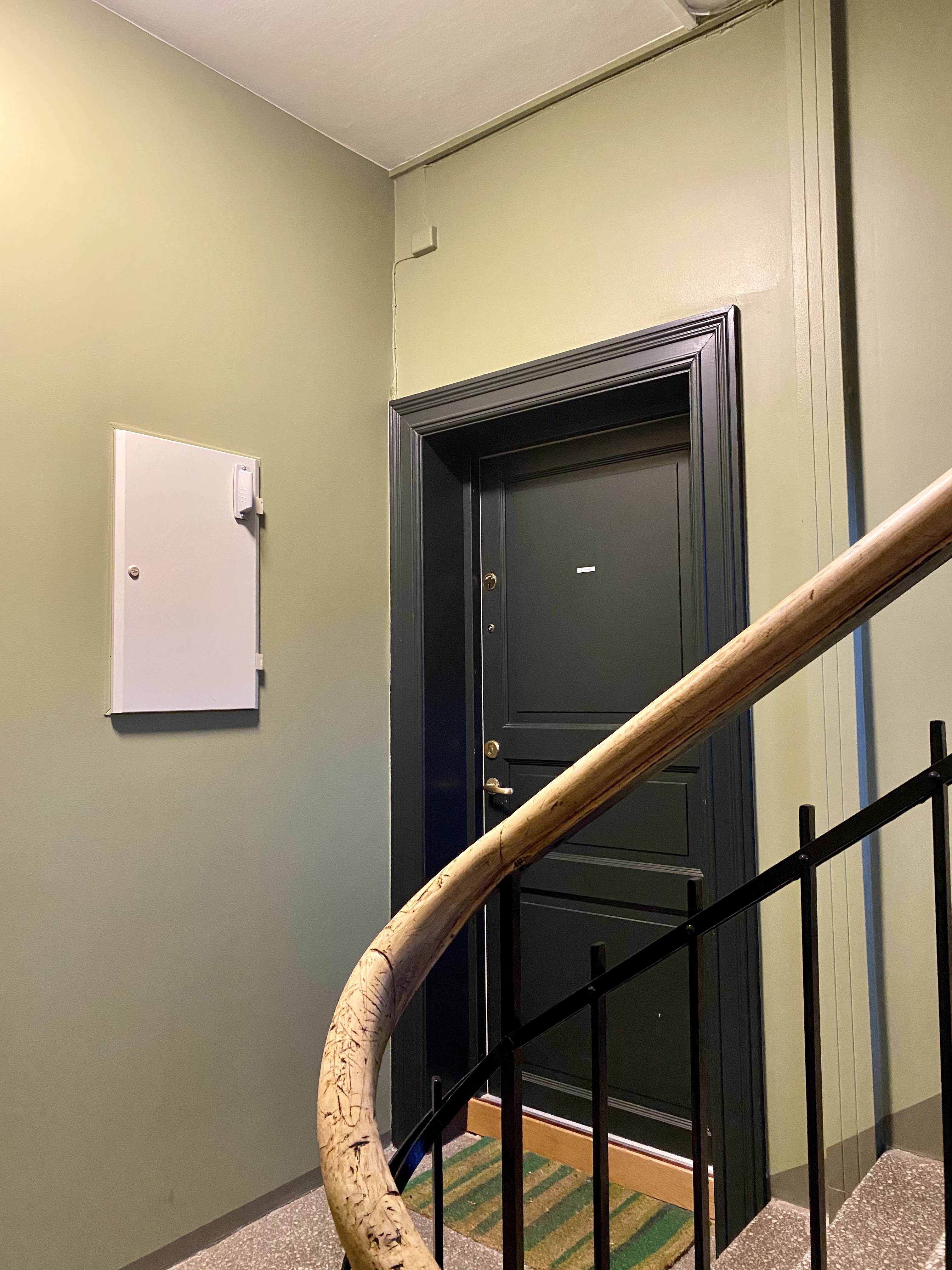 Fargene som brukes er valgt av historiske, estetiske og praktiske årsaker. Grønnfargen som er valgt på veggene er en lysere utgave av fargen på de grønne byggene, og dørene er malt i samme farge som vinduskarmene på bygget. Trappene settes inn med et middel for å bevare steinen, og gelenderet lakkes forsiktig med en klar lakk. Det blir også montert ny belysning med bevegelsessensor.